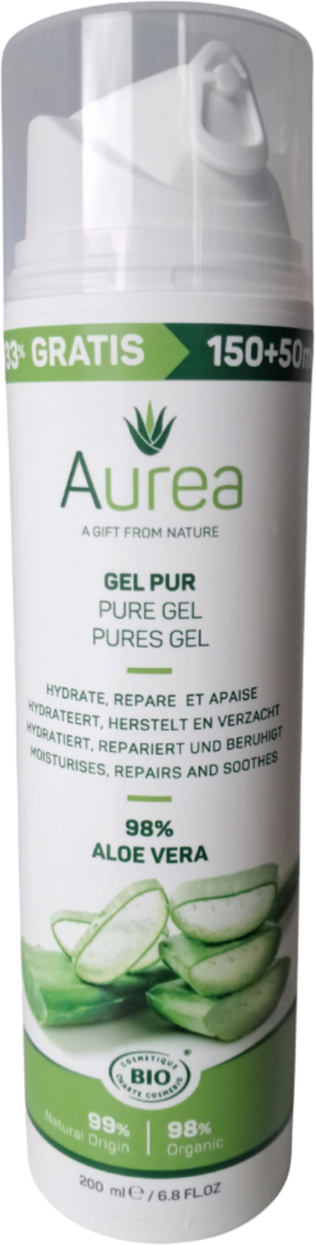 Aurea Pure Jelly je hydratační gel vyrobený z 98 % z nerafinované aloe vera. Tento gel, obohacený o přírodní želírující látku, je přirozeně bohatý na polysacharidy, které hrají důležitou roli při udržování zdravé buněčné struktury. Mají také vyživující a regenerační vlastnosti, které mimo jiné pozitivně působí na tvorbu jizev a obnovu kožních buněk.