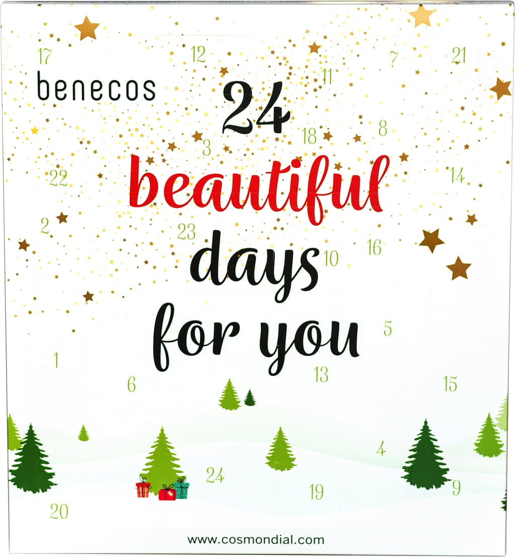 Objevte kouzelný adventní kalendář od benecos, který nabízí 24 dní radosti a překvapení. Za každými dvířky se skrývají pečlivě vybrané produkty z řad dekorativní kosmetiky a základních pečujících produktů, které Vám nebo Vašim blízkým zpříjemní předvánoční období. Udělejte z každého dne výjimečný zážitek, díky kterému bude čas do Vánoc radostně ubíhat.