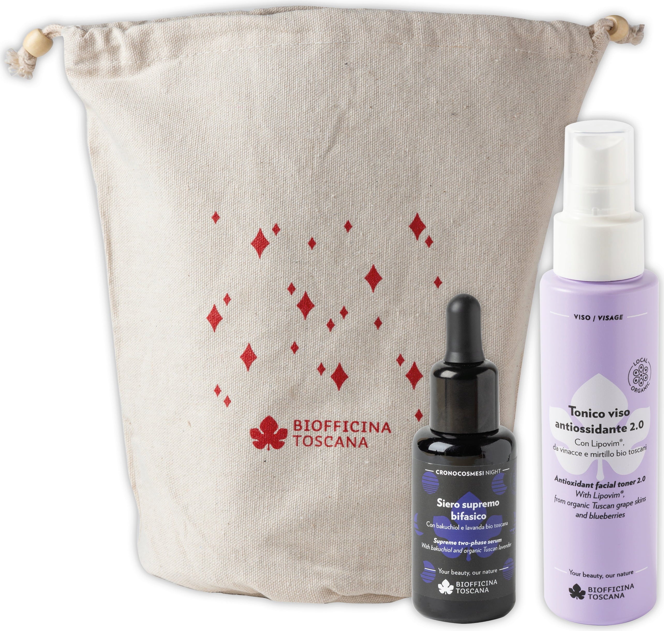 Darujte dárkovou sadu pro zářivou a sametově hebkou pleť: Pleťové tonikum připraví pleť na následnou péči a vylepší její vlastnosti, zatímco dvoufázové super sérum kombinuje hydrataci a péči.