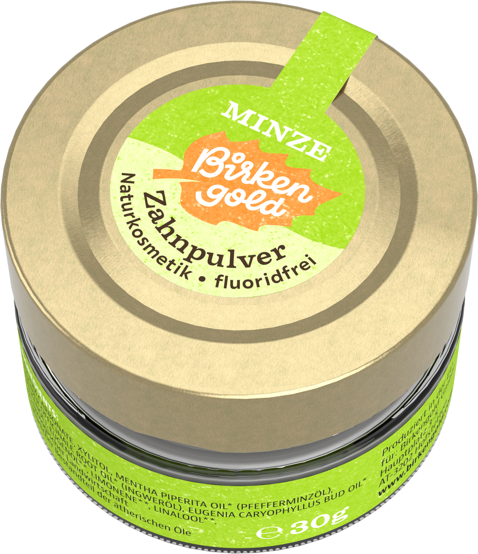 Zubní prášek Birkengold® čistí zuby a celou ústní dutinu jemně, ale důkladně a je obzvláště šetrný k citlivým dásním. Xylitol a esenciální oleje obsažené v zubním prášku působí jako ochranný film na zubu, a brání tak napadení bakteriemi. Pravidelné používání také zajišťuje vyváženou alkalickou ústní flóru a svěží mátová chuť potěší celou rodinu.