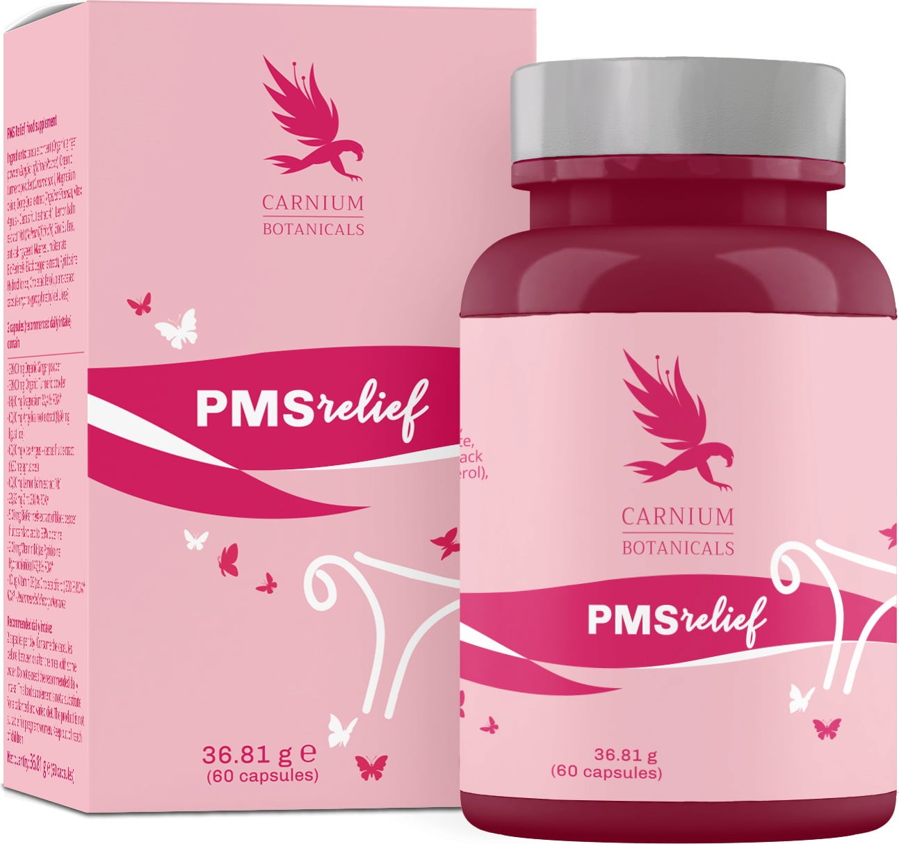 PMS Relief je doplněk stravy určený ženám – obsahuje hořčík, zázvor, čínský andělikový kořen, drmek obecný, meduňku a vitamíny B6 a D3. Složení kapslí je veganské, bez lepku a konzervačních látek.
