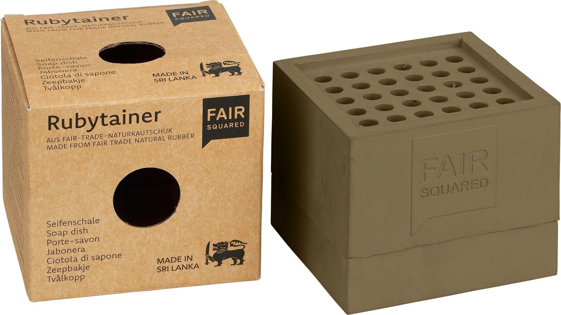 Praktický Rubytainer od FAIR SQUARED má moderní design a představuje skutečnou úlevu při skladování nebo přepravě tuhých mýdel. Poctivě obchodovaný přírodní kaučuk také chrání před rozbitím při cestování.