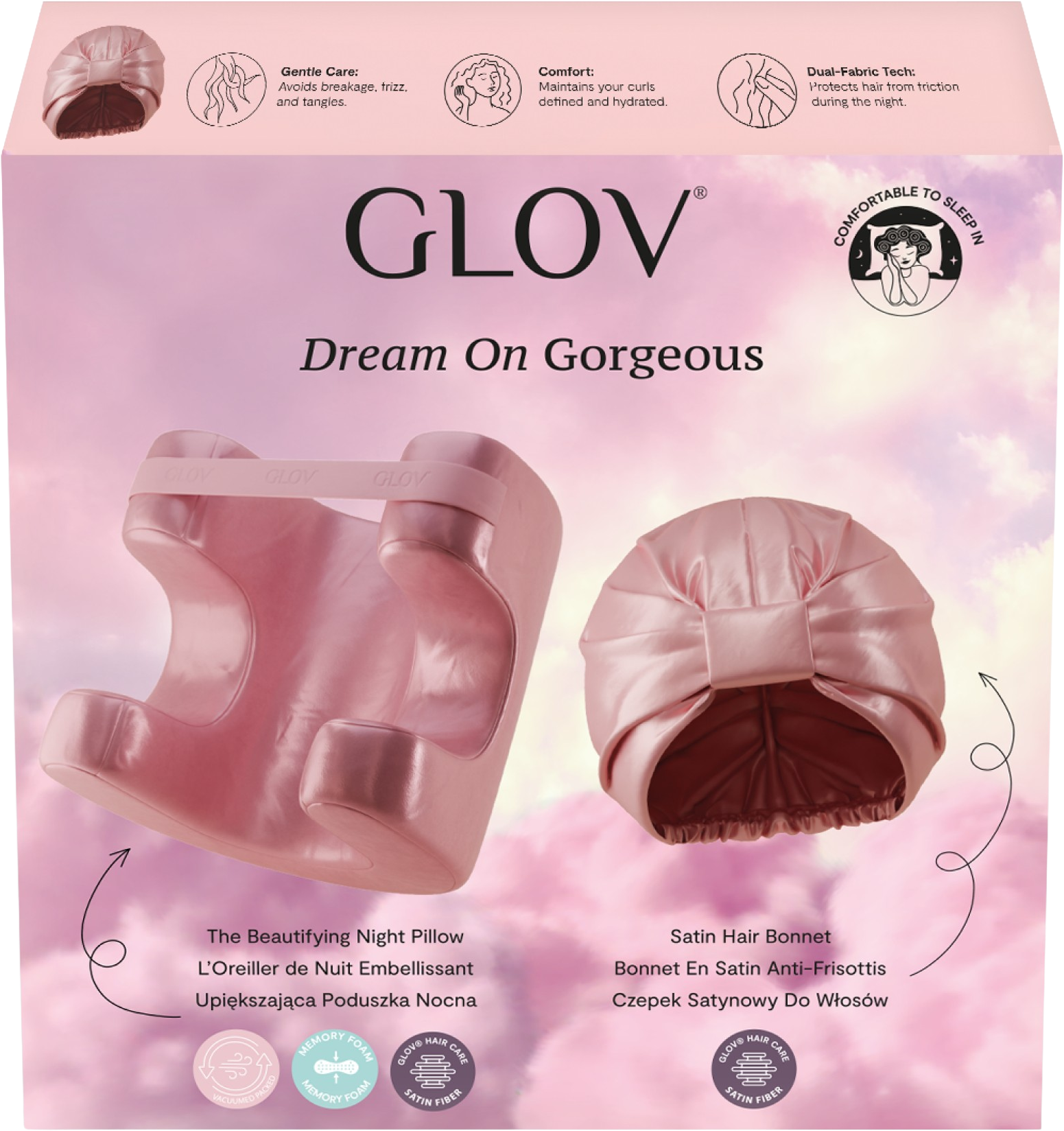 • Satin Hair Bonnet – chrání vlasy před krepatěním, lámáním a zacucháním během spánku.