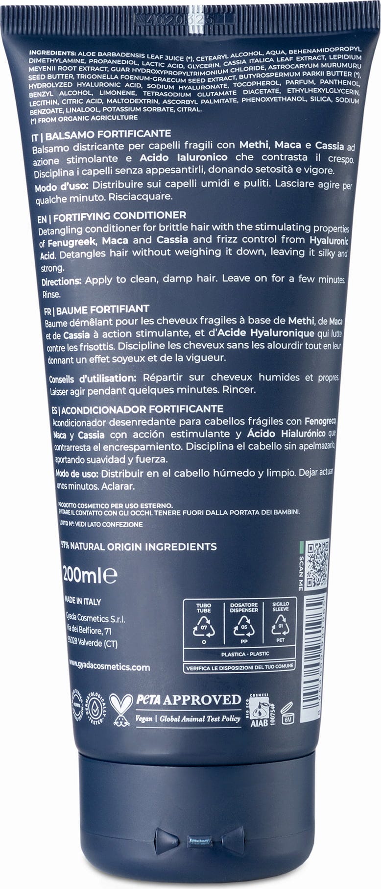 Aloe Barbadensis Leaf Juice[1], Cetearylalcohol, Aqua, Behenamidopropyl Dimethylamine, Propandiol, Lactic Acid, Glycerin, Cassia Italica Leaf Extract, Lepidium Meyenii (Maca) Root Extract, Guar Hydroxypropyltrimonium Chloride, Astrocaryum Murumuru Seed Butter, Trigonella Foenum Graecum Seed Extract, Butyrospermum Parkii (Shea) Butter[1], Hydrolyzed Hyaluronic Acid, Sodium Hyaluronate, Tocopherol (Vitamin E), Parfum, Panthenol, Benzyl Alcohol, Limonene, Tetrasodium Glutamate Diacetate, Ethylhexylglycerin, Lecithin, Citric Acid, Maltodextrin, Ascorbyl Palmitate, Phenoxyethanol, Silicia, Sodium Benzoate, Linalool, Potassium Sorbate, Citral