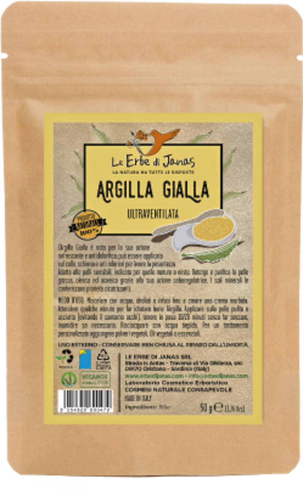 Žlutý jíl představuje minerální prášek pro čištění a péči o normální a smíšenou pleť. Je obzvláště jemný a lze jej použít i na citlivou pokožku. Ideální na obličej, krk a záda.