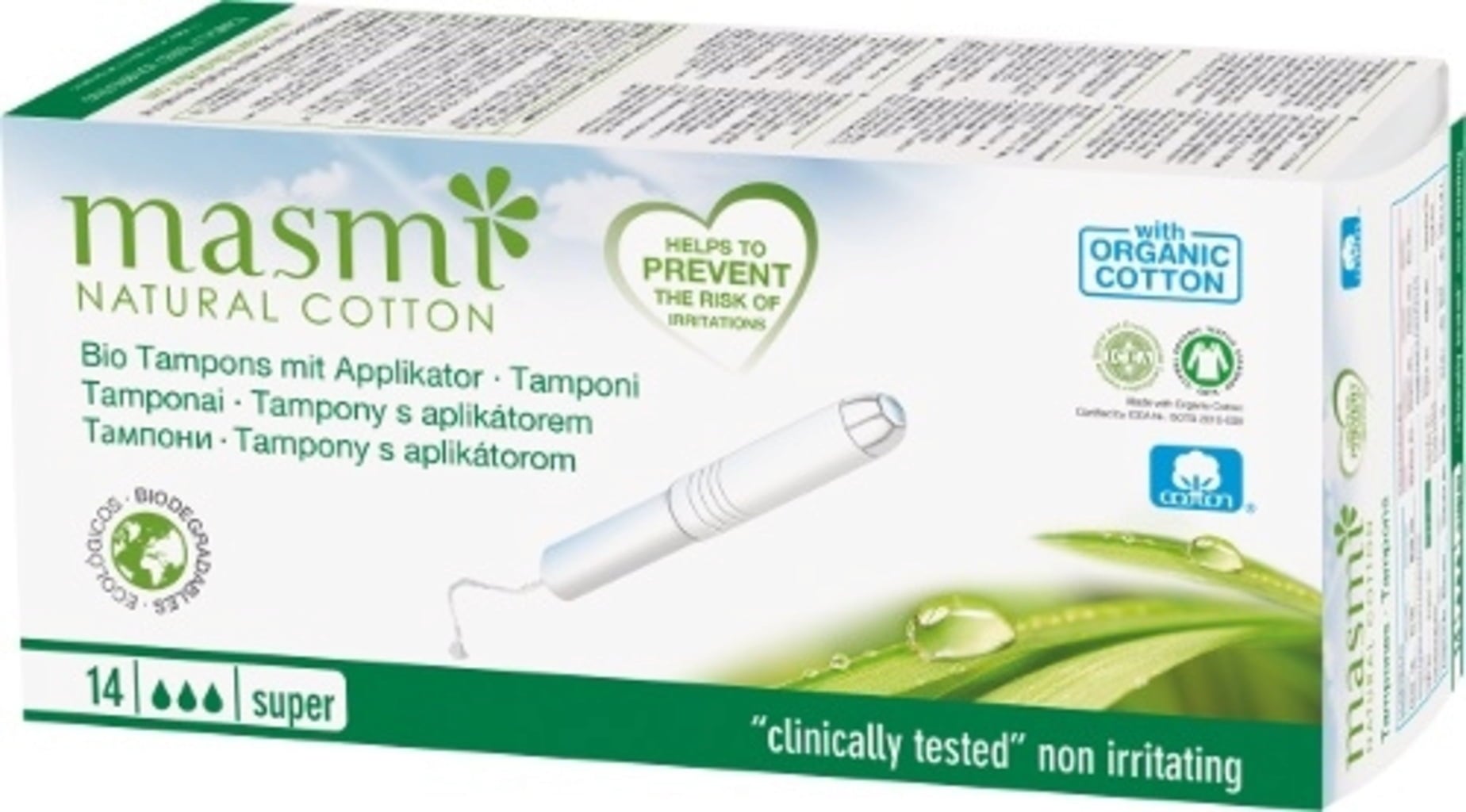 masmi Organické tampony + aplikátor, Super (14 ks)