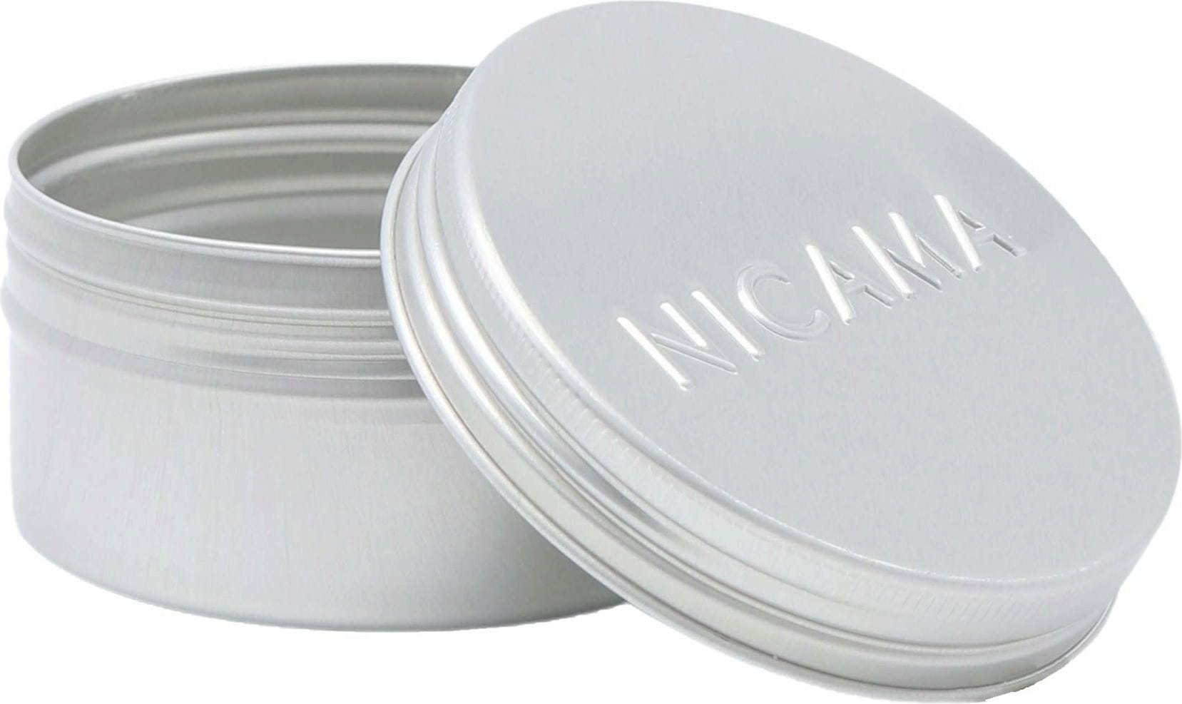 Díky praktické hliníkové dóze si můžete šampony značky NICAMA snadno vzít s sebou na cesty. Její šroubovací uzávěr zajišťuje bezpečné uzavření a zároveň se snadno otevírá. Volitelná odkapávací mřížka se dá jednoduše vyjmout a zaručuje, že Vaše tuhé šamponové mýdlo dobře vyschne.
