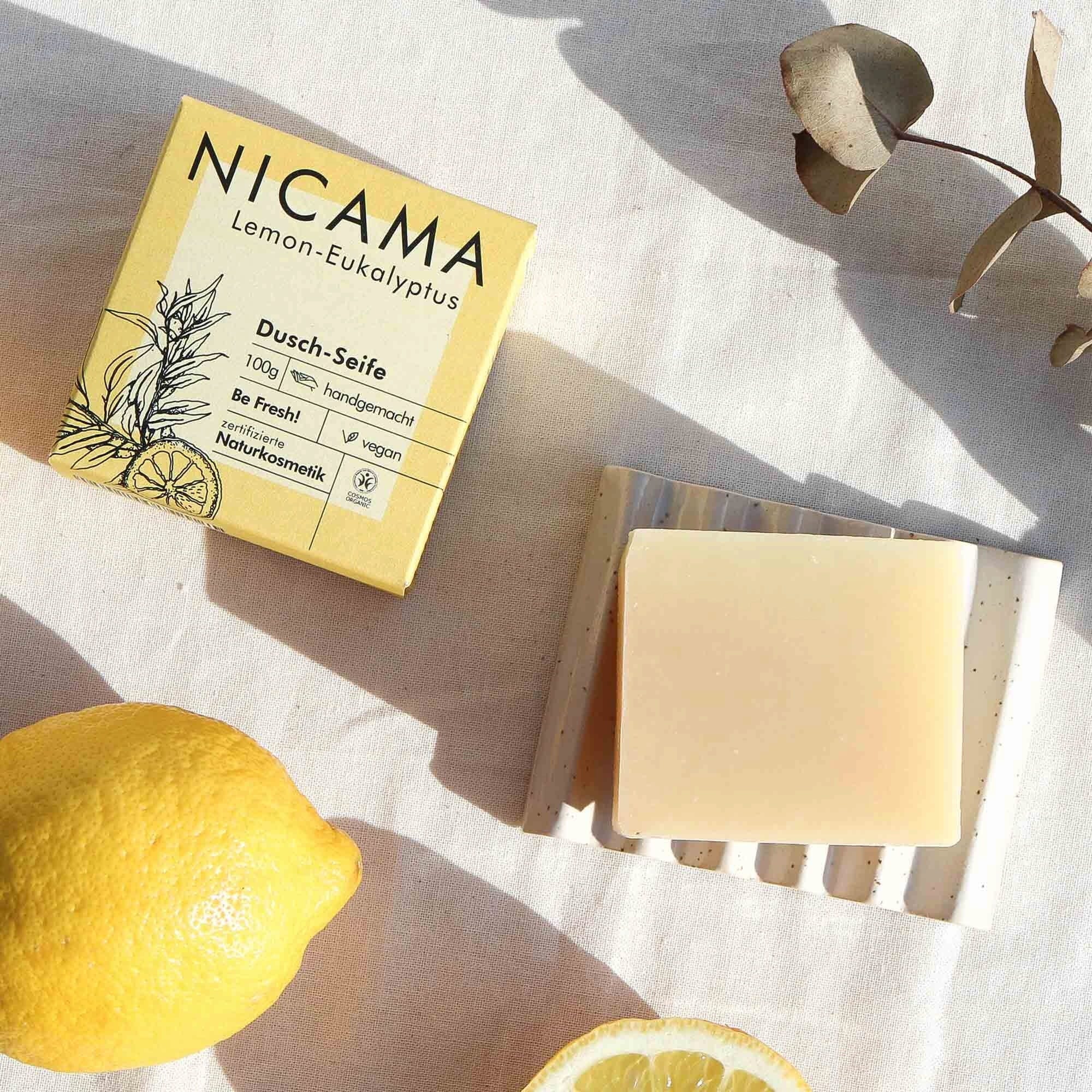 Mýdla NICAMA nabízejí šetrné čištění pokožky v kvalitě za studena vyráběného mýdla. Představují tak udržitelnou alternativu ke klasickému sprchovému gelu. Jsou ručně vyráběna z kvalitních olejů – olivového, ricinového a kokosového. Díky tomu je pokožka hýčkána a vyživována už během samotného mytí.