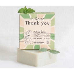 NICAMA "Thank you" mýdlo do sprchy i do koupele s meduňkou a šalvějí, 100 g