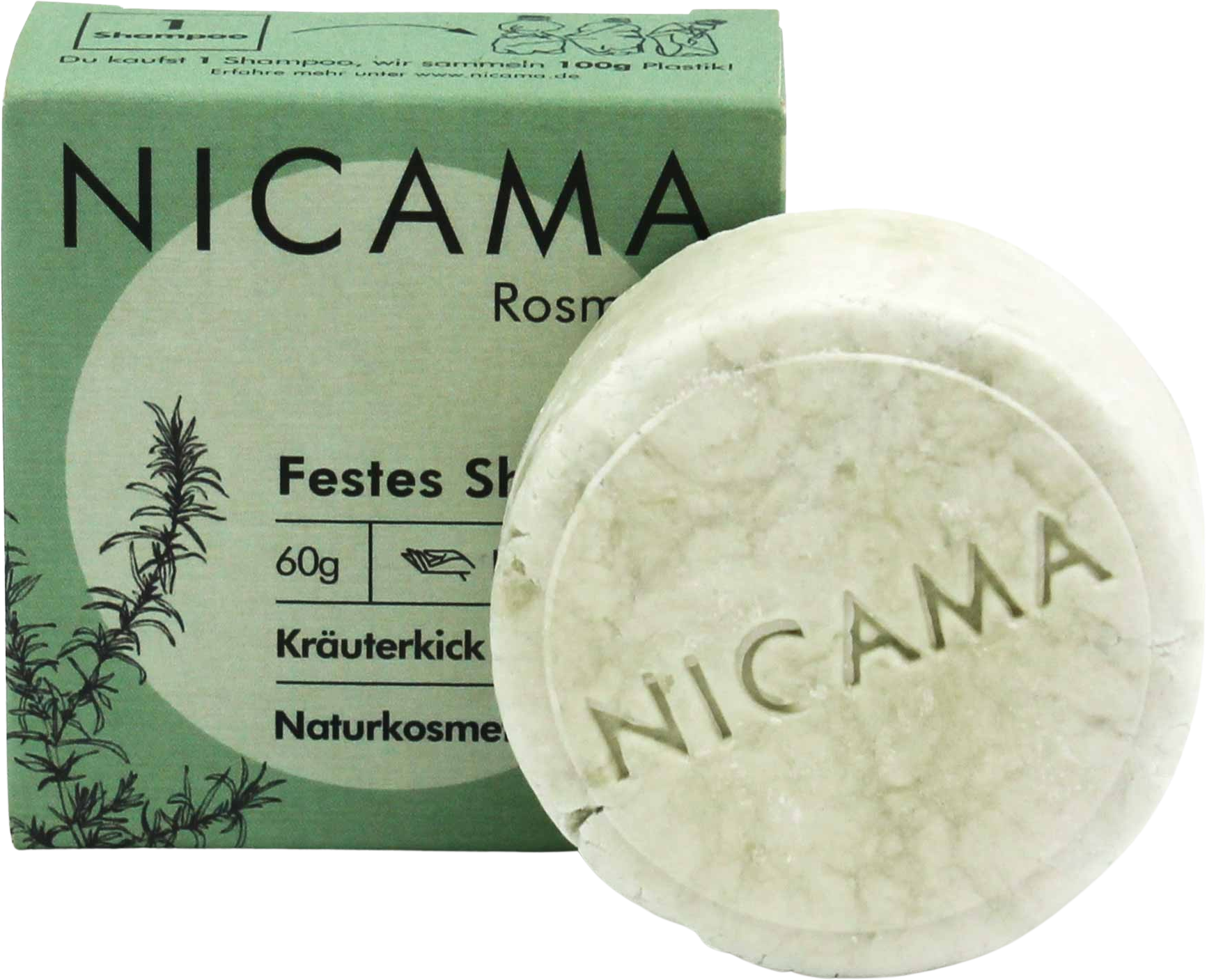 Šampony se běžně prodávají v tekuté formě v plastových lahvích. To vytváří zbytečný odpad z obalů a kvůli vysokému obsahu vody také vyšší emise během přepravy. Tuhý šampon od NICAMA vydrží mnohem déle než tekutý – podle délky vlasů a četnosti mytí s ním ušetříte až dvě plastové lahve šamponu.
