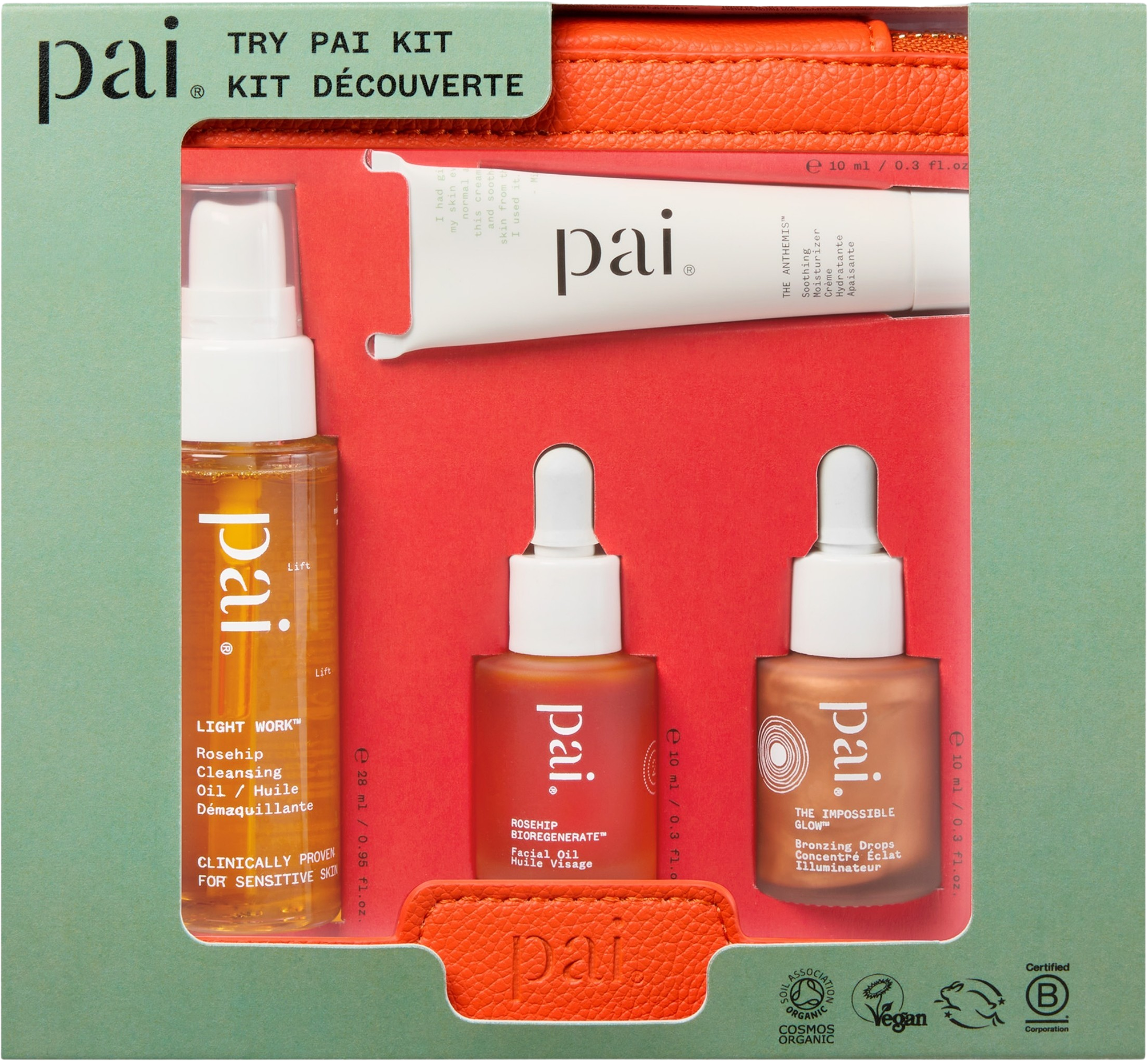 Slyšeli jste skvělé věci o kosmetice Pai, ale nevíte, kde začít? Milujete produkty, ale potřebujete jejich malé velikosti na vyzkoušení nebo na výlet? Pak je tato sada ideální pro Vás! Obsahuje čtyři bestsellery: vhodné pro všechny typy pleti a dokonce i citlivou pokožku, intenzivně vyživující a připravené k použití ve veganské toaletní taštičce.