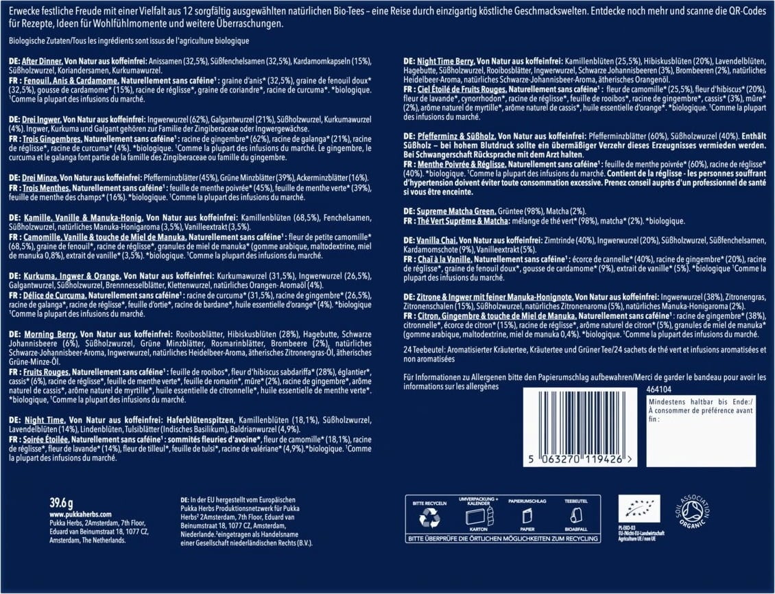 | Výrobce: | Lipton Teas and Infusions Germany GmbH, Axel-Springer-Platz 3, c/o WeWork, 20355, Hamburg, Německo, kontakt@pukkaherbs.de |