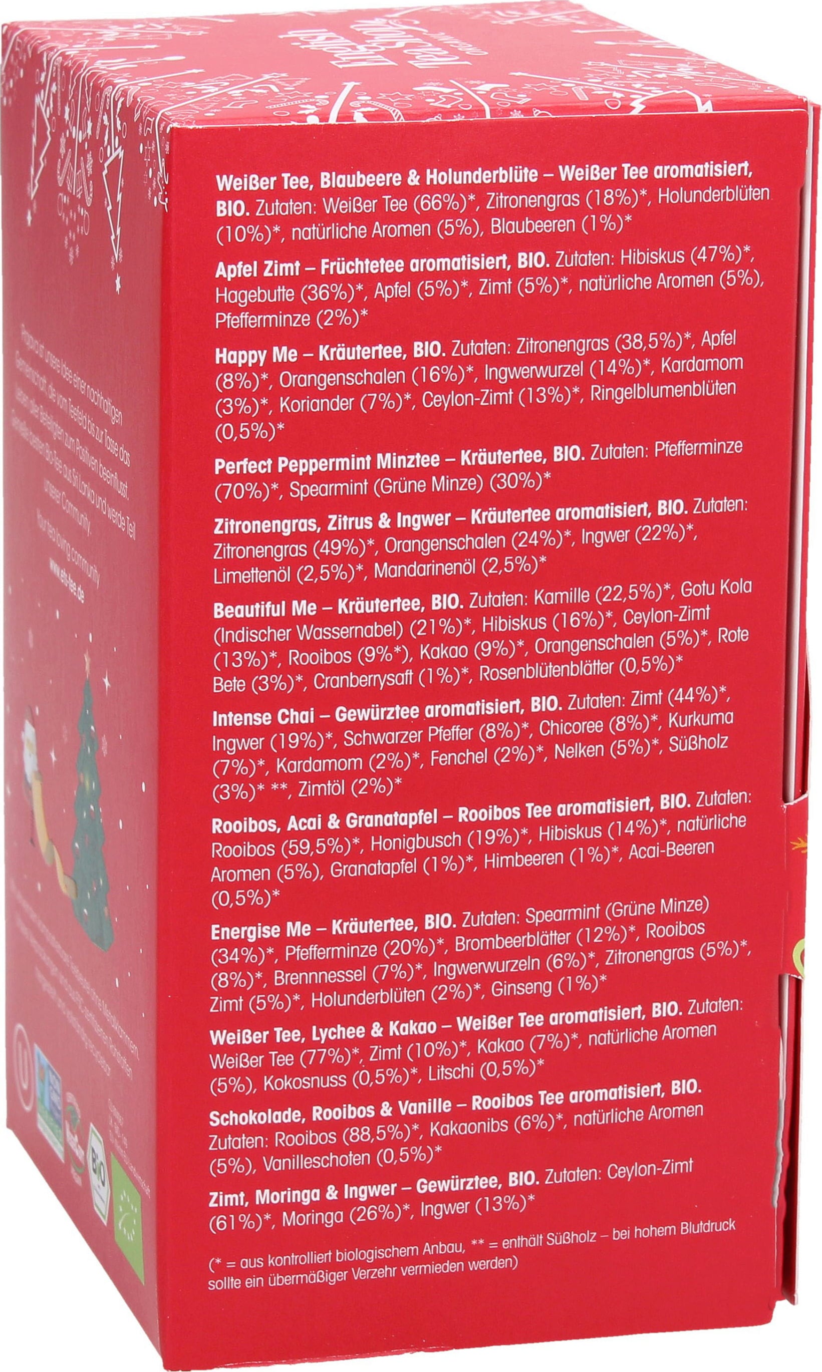Pít čaj a čekat na Ježíška - s 24 módními směsmi bio čaje je to mnohem větší zábava! I když jsou vánoční přípravy v plném proudu. Díky okouzlujícím ilustracím a elegantnímu designu šíří tento adventní kalendář s bio čaji sváteční očekávání.