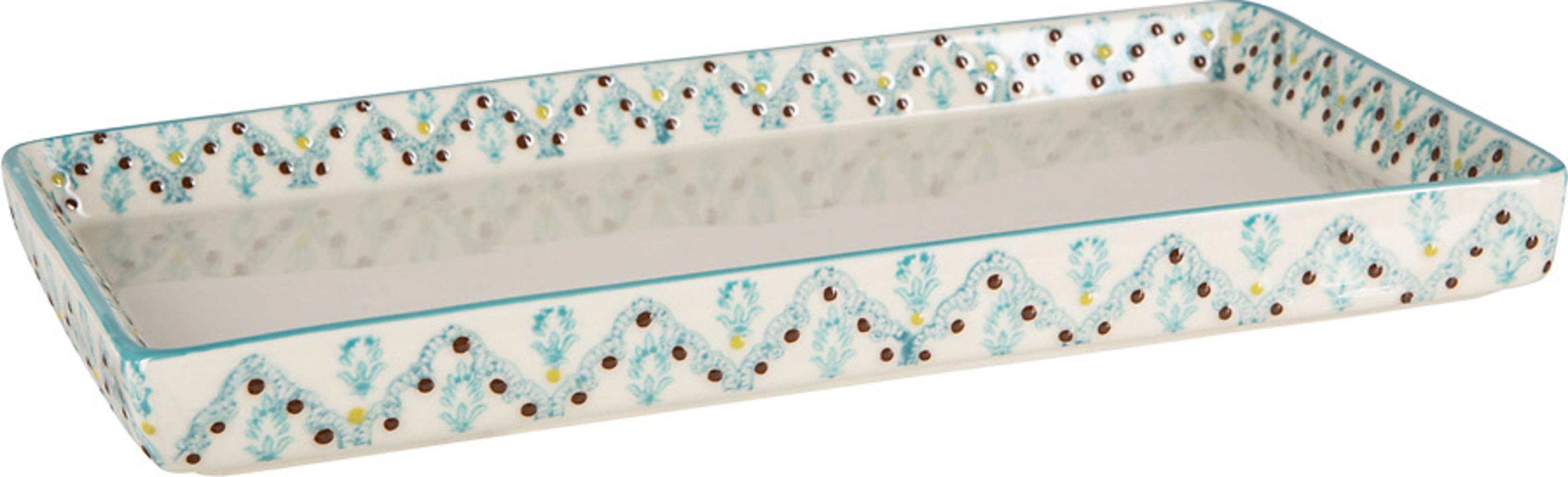 Proměňte svou koupelnu ve Váš zcela osobní wellness chrám! Tento krásný koupelnový odkládací tác v orientálním designu není jen poutavým doplňkem, ale je také praktický pro uložení každodenních drobností. Je vyroben z keramiky a byl ručně dekorován pomocí razítek.