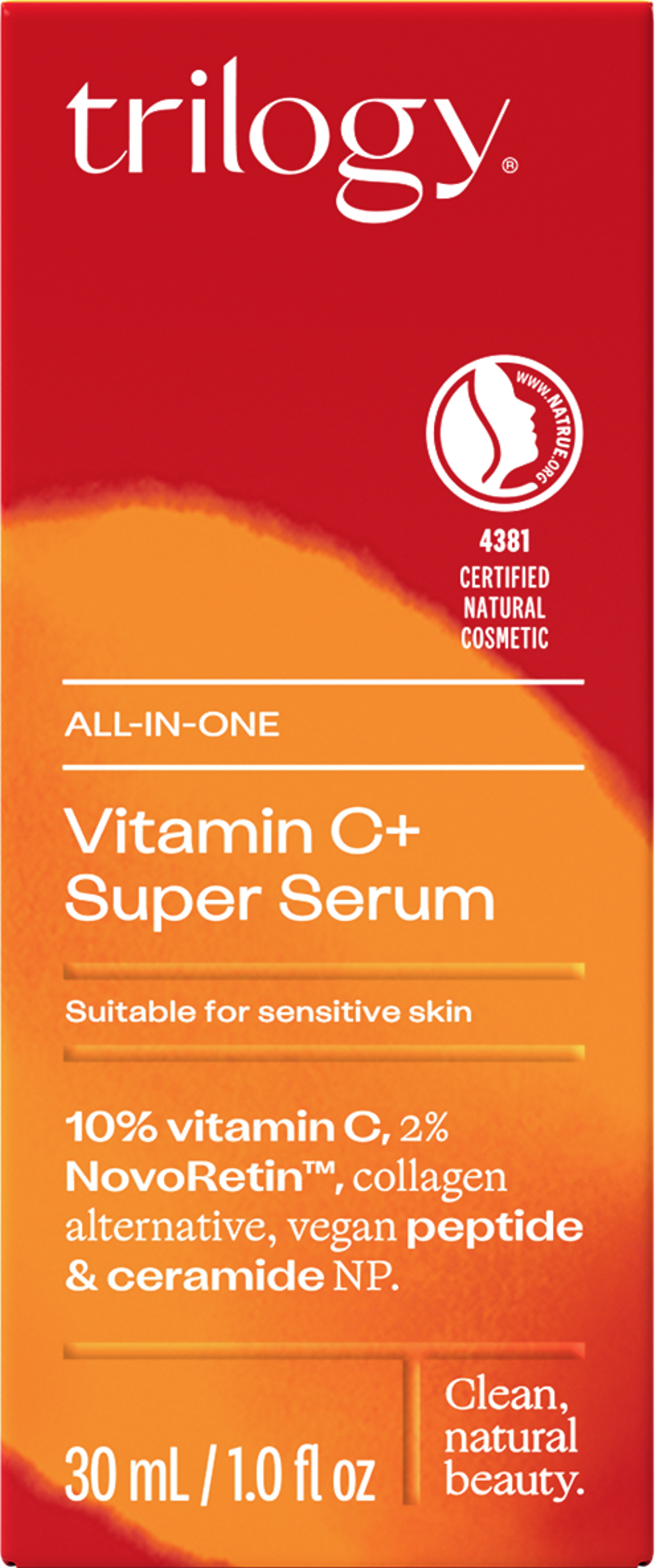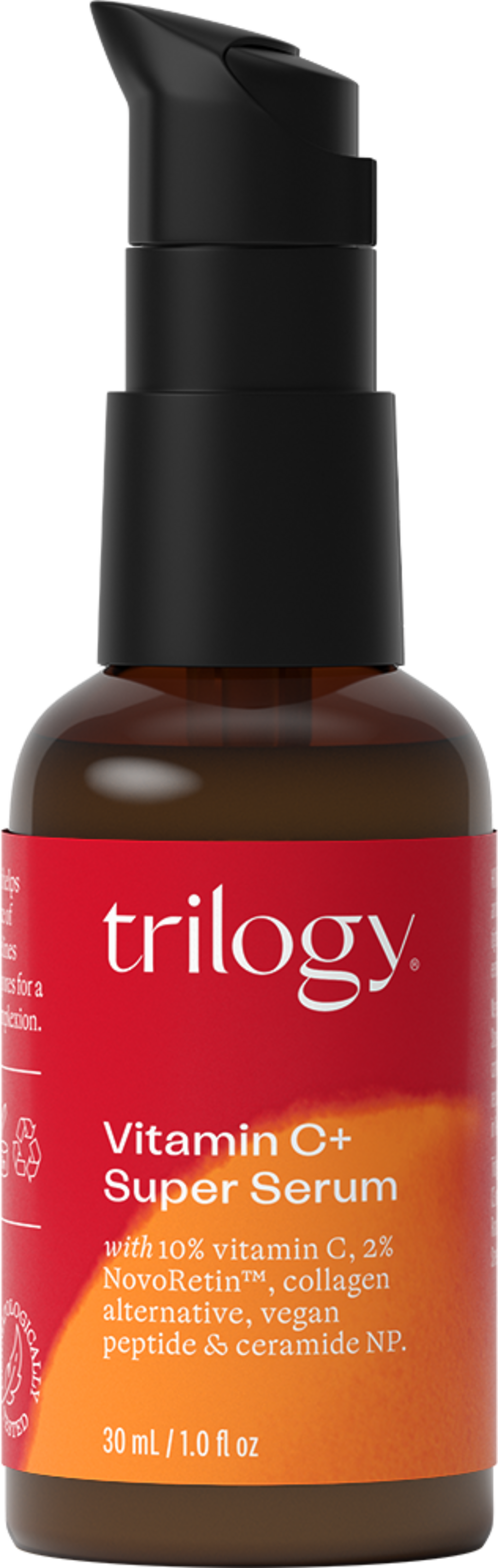 Vitamin C+ Super Serum od trilogy umožňuje snadno oddálit známky času. Sofistikované složení s 10 % stabilizovaného vitamínu C a 2 % NovoRetinu™ zesvětluje pigmentové skvrny, zjemňuje póry a vyhlazuje jemné vrásky. Směs kolagenu, ceramidů a peptidů podporuje přirozenou ochrannou bariéru pokožky, udržuje rovnováhu vlhkosti a dodává pleti cennou hydrataci.