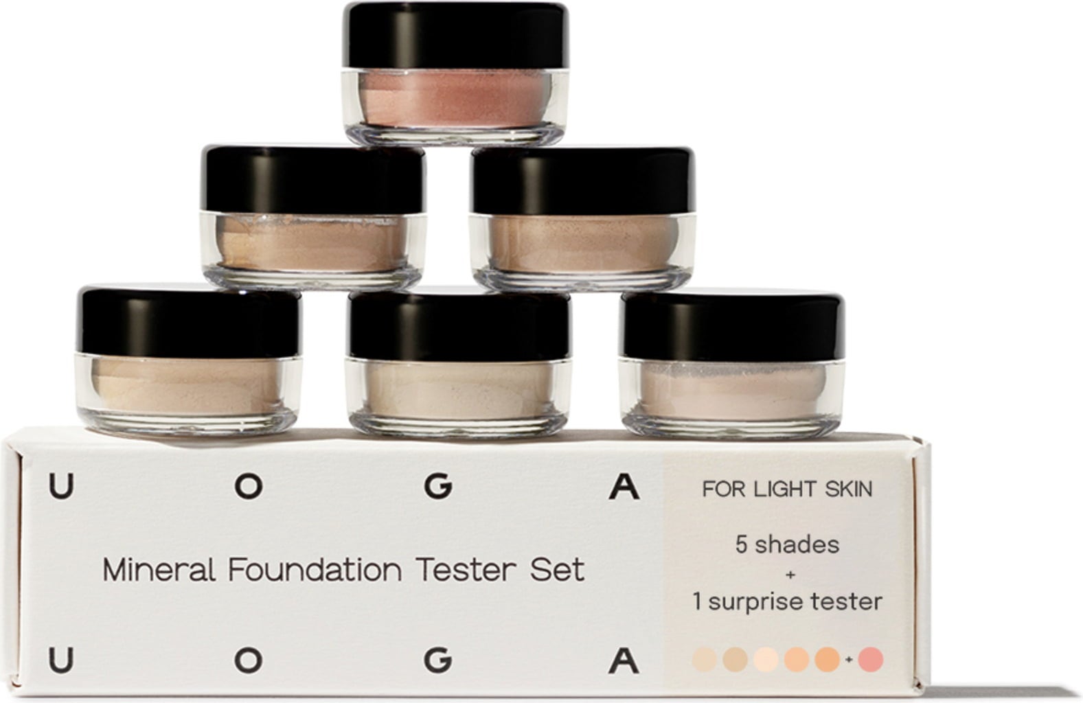 Najít ten správný odstín Foundation může být opravdu obtížné. Proto UOGA UOGA připravila tyto sady, abyste si mohli vyzkoušet a vybrat Foundation doma, za ideálních světelných podmínek. A k nim se hodí i odpovídající tvářenka (blush). Sada však dokáže víc než jen to. Můžete si namíchat správnou barvu z různých odstínů, světlejší odstíny použít jako korektor nebo tmavší na konturování.