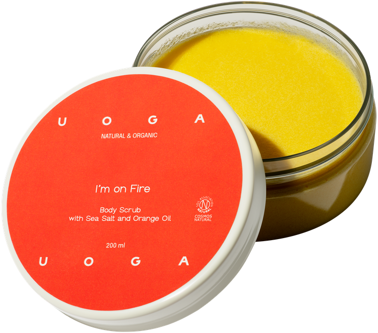 Natural Body Scrub "I'm on fire" značky UOGA UOGA jemně exfoliuje pokožku, díky nejjemnější mořské soli a odstraňuje odumřelé částečky kůže. Kombinace sezamového a rakytníkového oleje vyživuje a hydratuje tělo, zatímco pomerančová vůně okouzluje smysly.