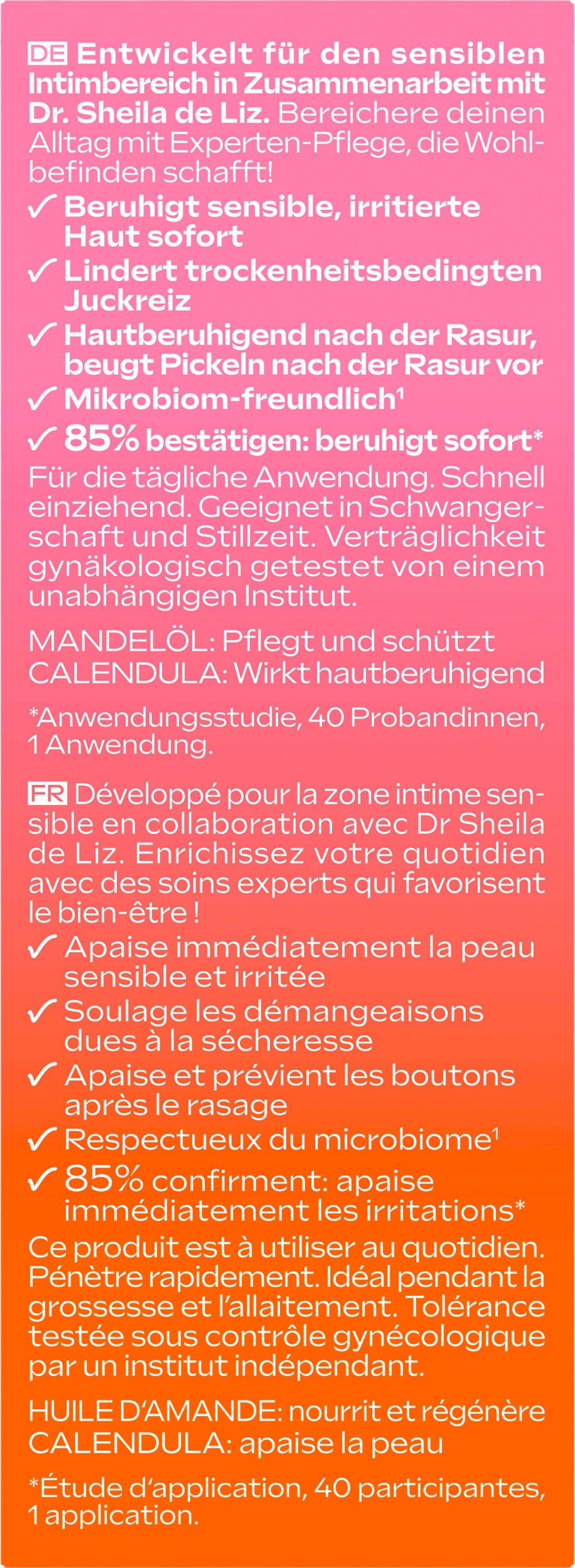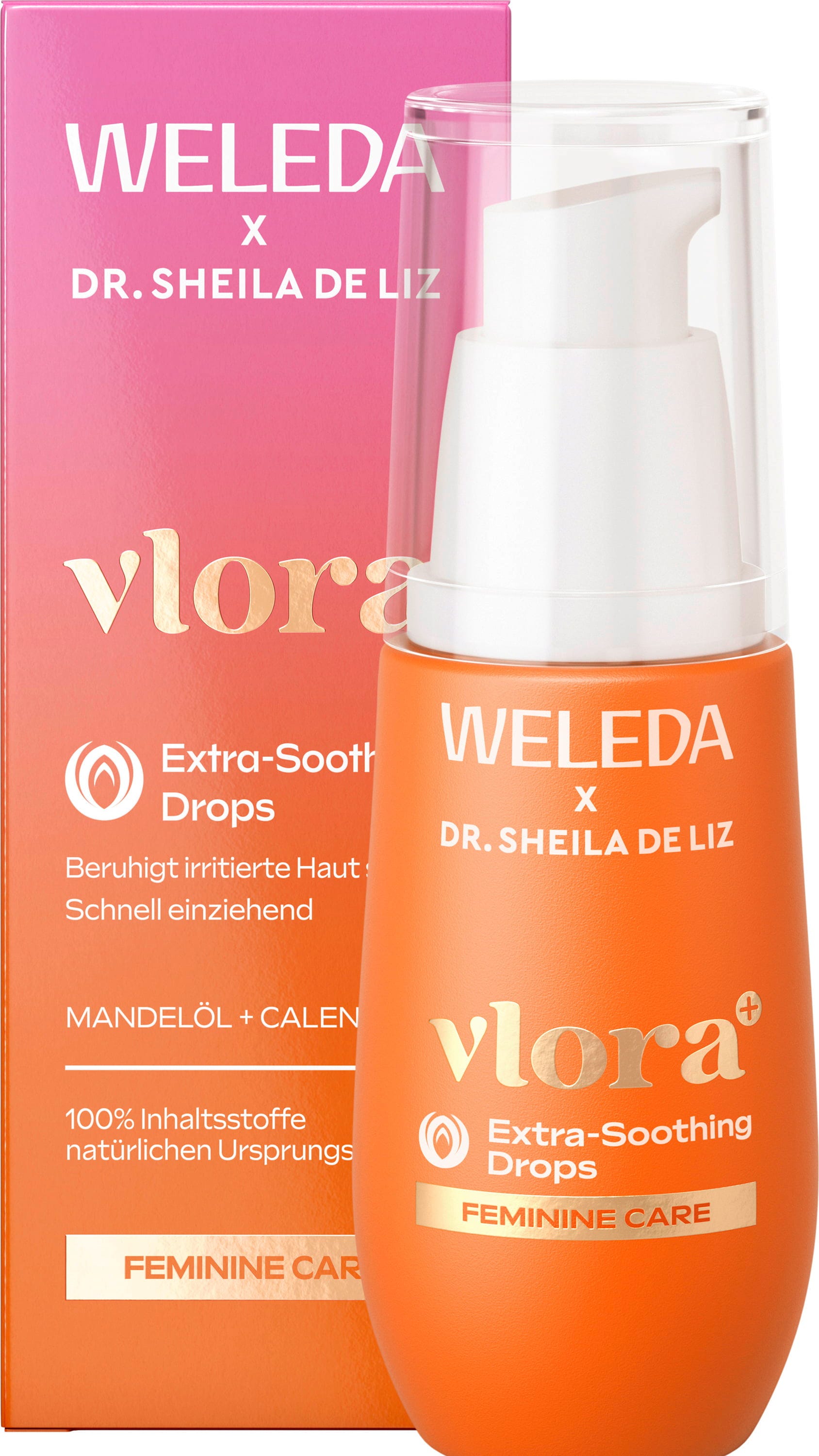 vlora Extra-Soothing Drops byly vyvinuty ve spolupráci s odbornicí Dr. Sheila de Liz speciálně pro citlivou intimní oblast a jsou ideální pro každodenní péči. Díky složení šetrnému k mikrobiomu pomáhá produkt předcházet pocitu suchosti a je vhodný také jako péče po holení.