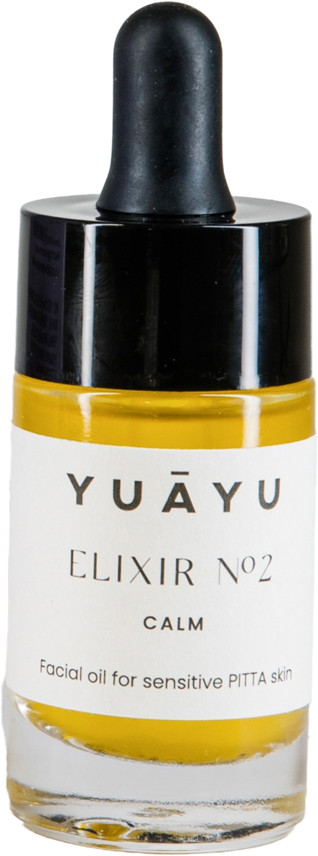 Elixir No. 2 od YUĀYU je ajurvédou inspirovaný pleťový olej s vyváženou směsí pečujících rostlinných olejů, speciálně přizpůsobený citlivé a smíšené pleti. Složky jako extrakt z měsíčku a heřmánku, olej z hroznových jader a divoké růže, stejně jako 1 % bakuchiolu a cenný extrakt z řas, optimálně pečují o vaši pitta pleť, podporují hydrataci a zanechávají ji příjemně hebkou. Jemná vůně citronu a růže navíc potěší vaše smysly.