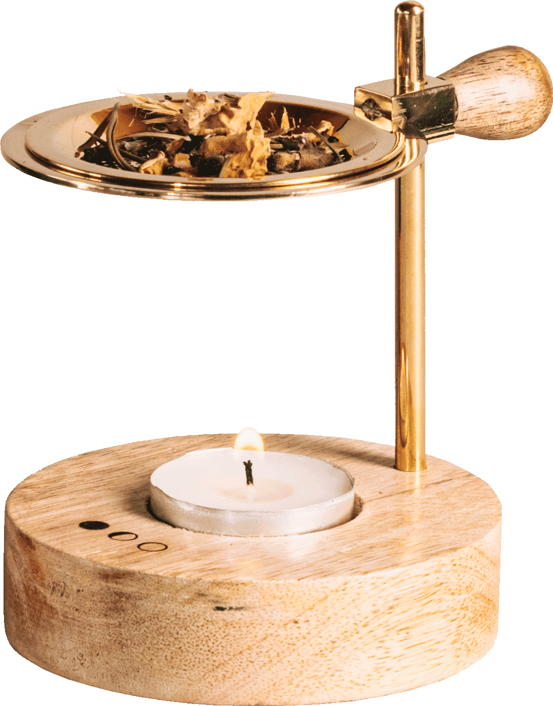 - Přírodní dřevěná základna (Ø 9 cm) zdobená logem měsíce YUĀYU
